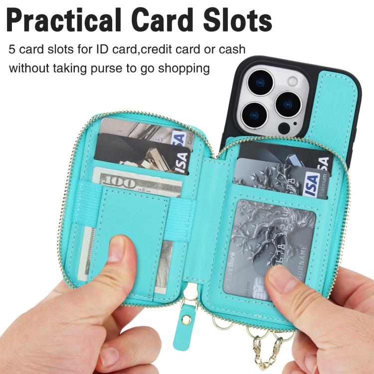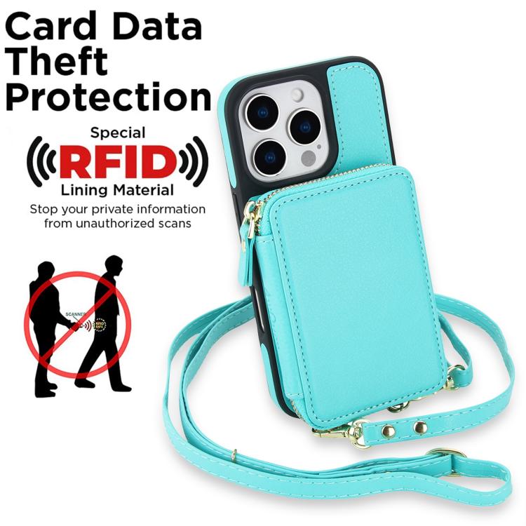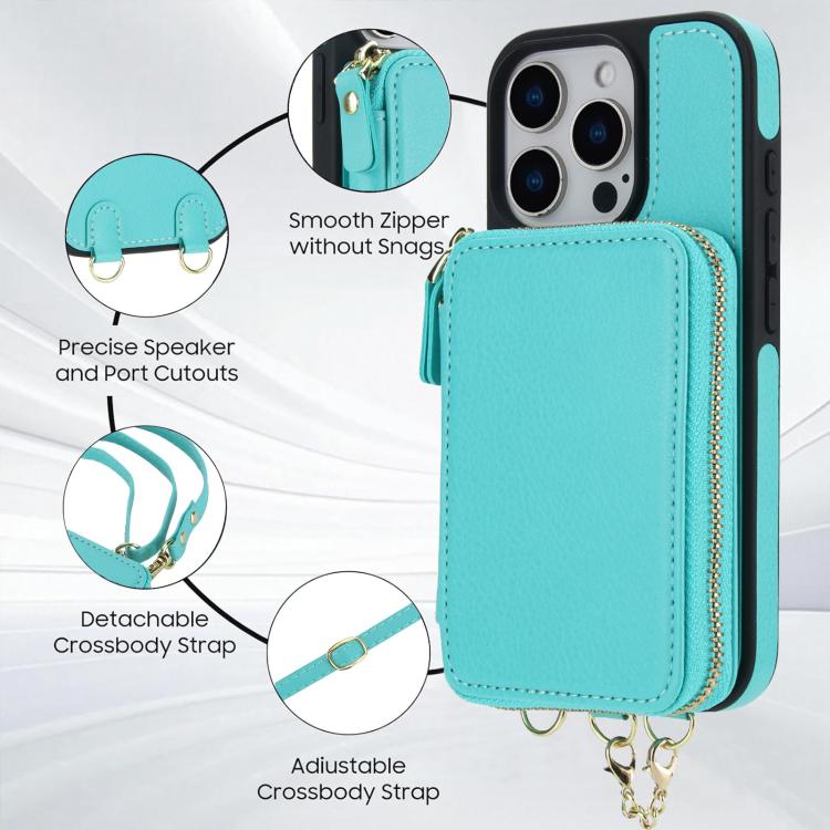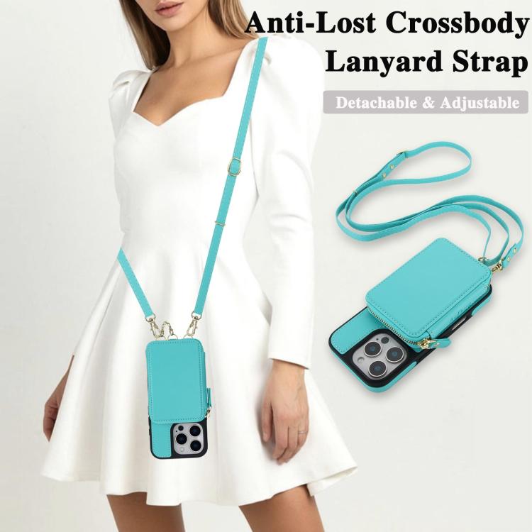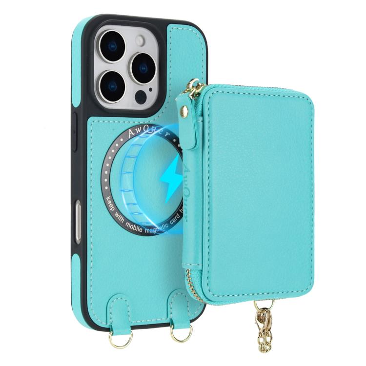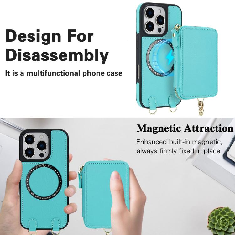 For iPhone 15 AwQuer 2 in 1 Crossbody Wallet Leather Back Phone Case(Light Green)