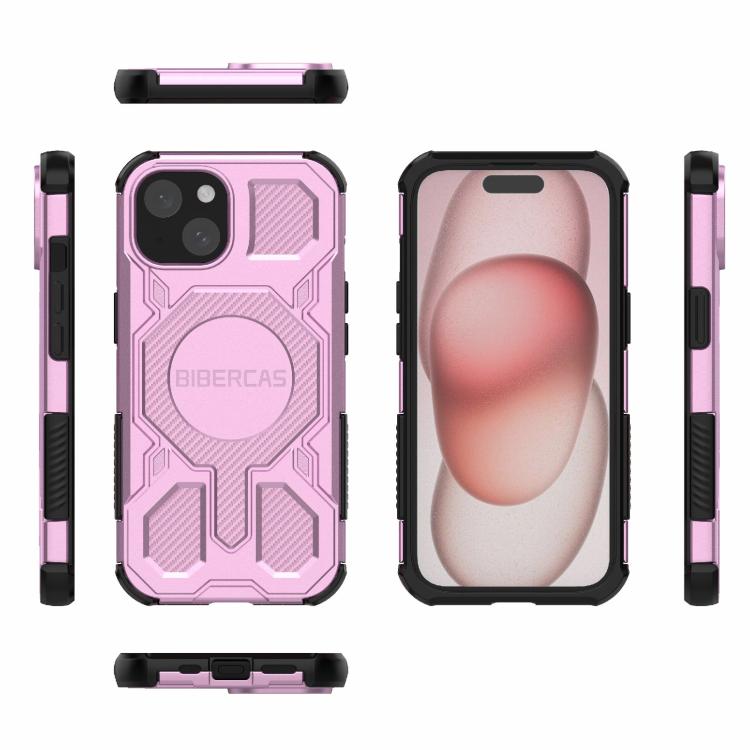 For iPhone 15 BIBERCAS Real Color Series MagSafe Shockproof Phone Case(Pink)