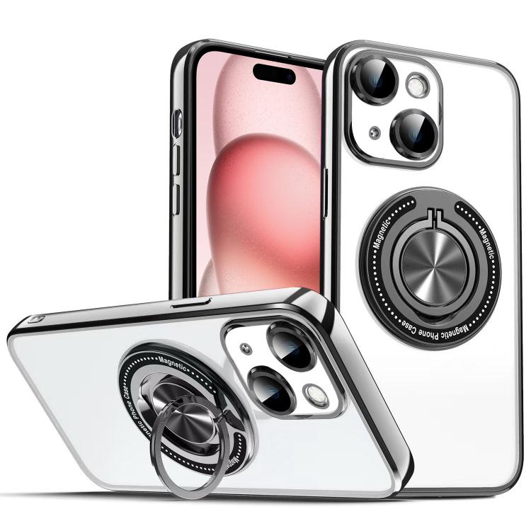 For iPhone 15 Colorful 360 Invisible Ring MagSafe Phone Case(Black)