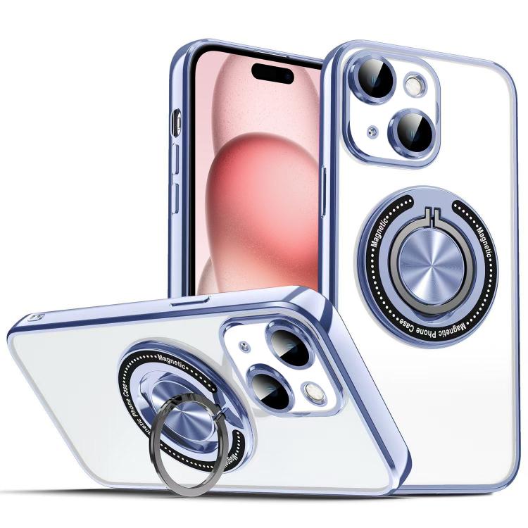 For iPhone 15 Colorful 360 Invisible Ring MagSafe Phone Case(Blue)