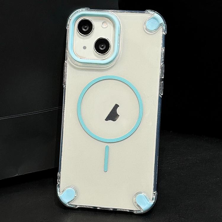 For iPhone 15 Contrast Color Airbag Magsafe TPU Full Coverage Phone Case(Blue)