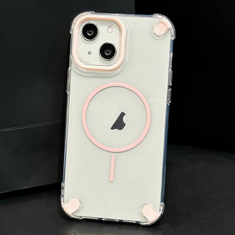 For iPhone 15 Contrast Color Airbag Magsafe TPU Full Coverage Phone Case(Pink)