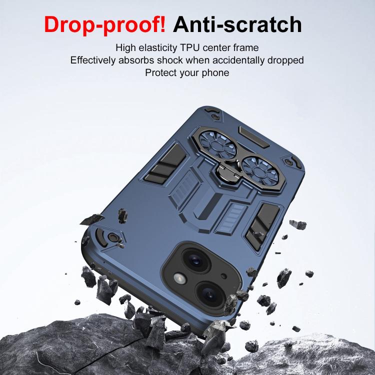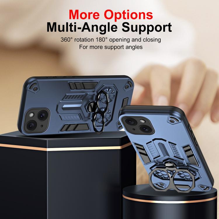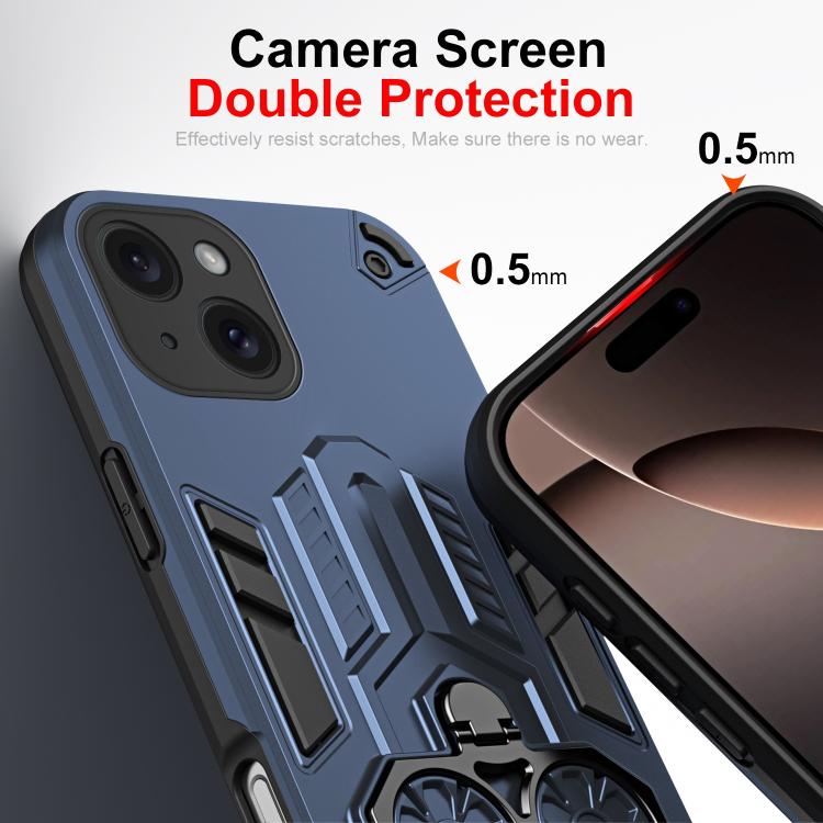 For iPhone 15 Double-Ring Holder PC Hybrid TPU Phone Case(Ocean Blue)