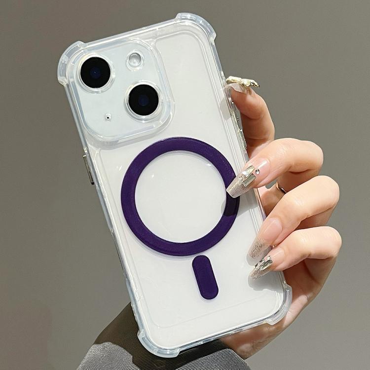 For iPhone 15 Electroplating TPU Hybrid PC Four Corners Shockproof MagSafe Phone Case(Purple)