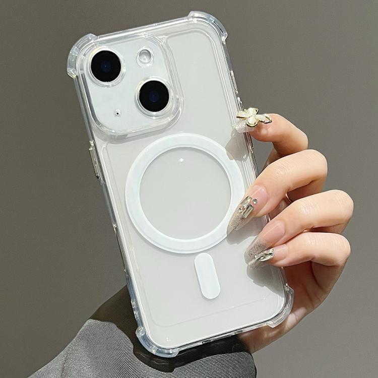 For iPhone 15 Electroplating TPU Hybrid PC Four Corners Shockproof MagSafe Phone Case(White)