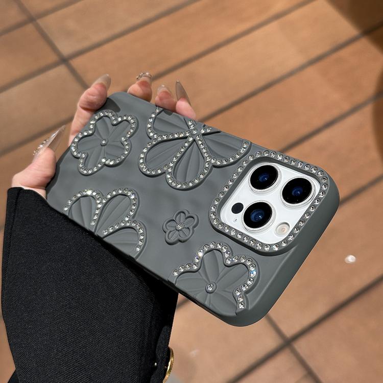 For iPhone 15 Flower Crystal Diamond TPU Phone Case(Black)