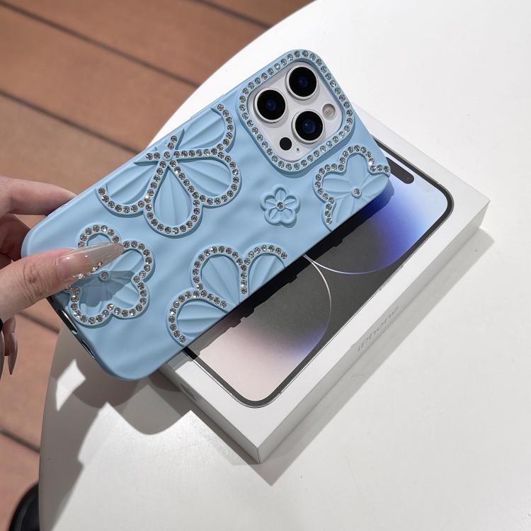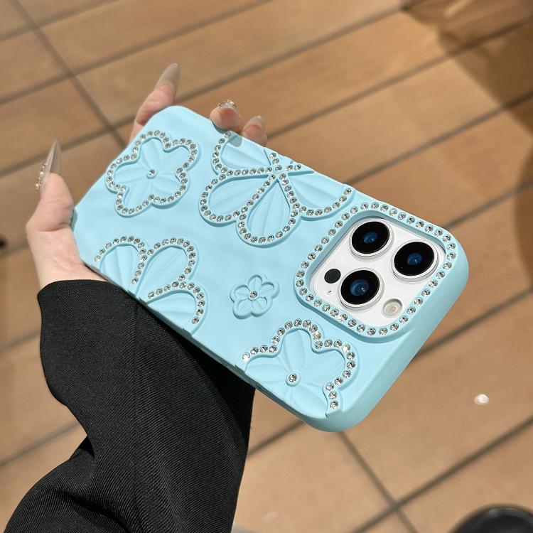 For iPhone 15 Flower Crystal Diamond TPU Phone Case(Blue)