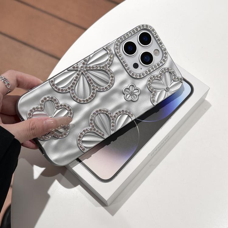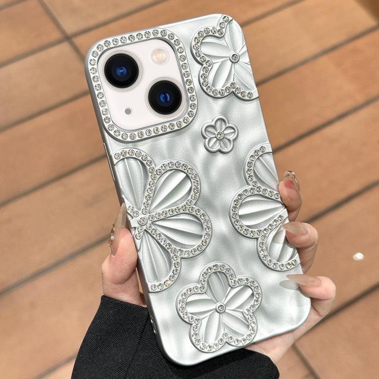 For iPhone 15 Flower Crystal Diamond TPU Phone Case(Silver)