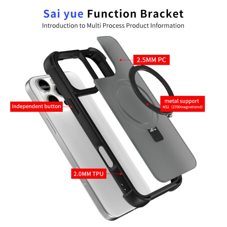 For iPhone 15 Four-corner Shockproof MagSafe Holder Phone Case(Gold)