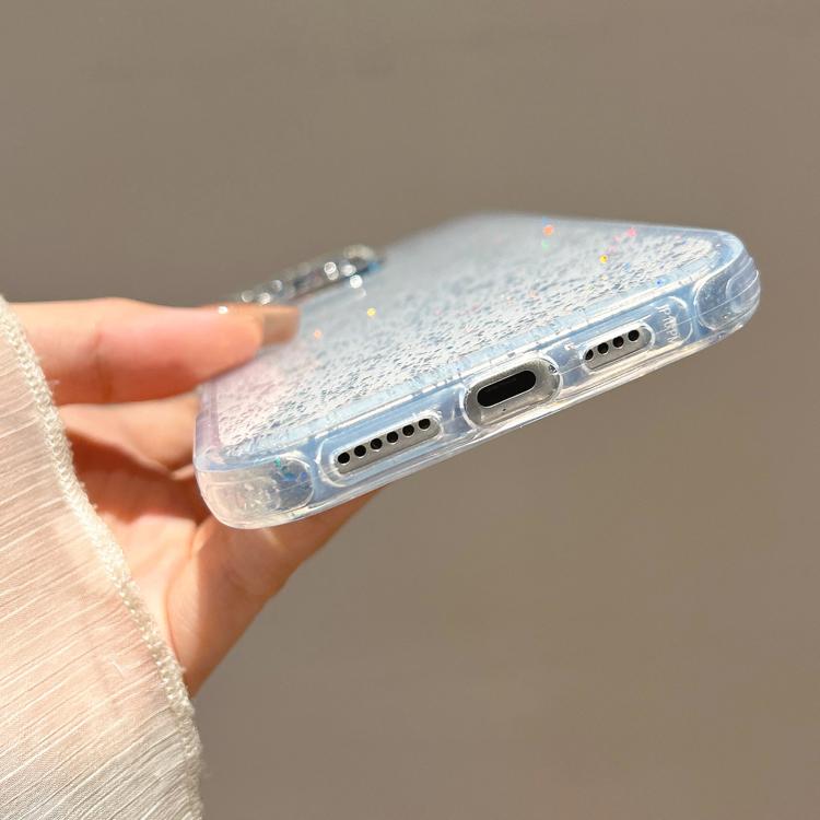 For iPhone 15 Glitter Foil Diamond-encrusted Camera Frame TPU + IMD Phone Case(White)