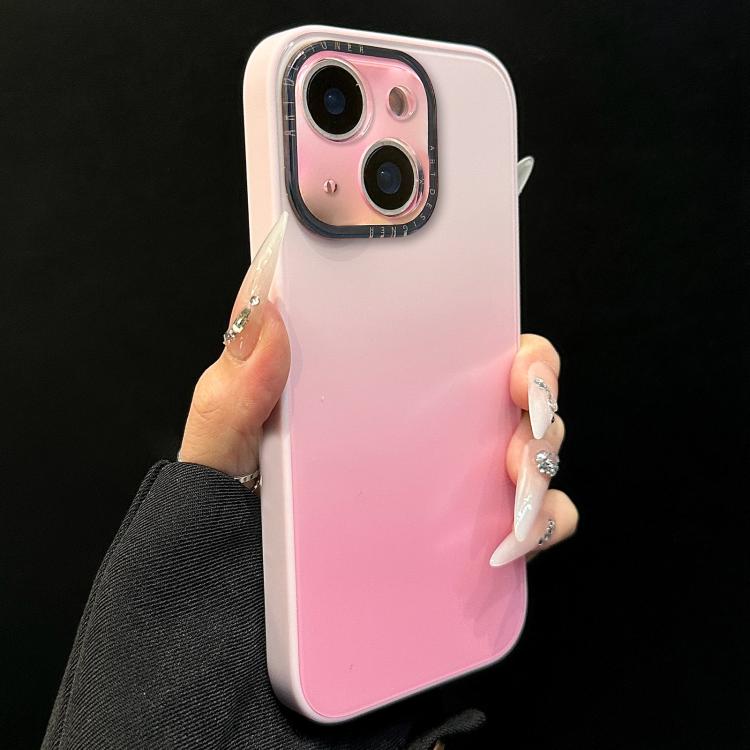 For iPhone 15 Gradient Silk Print Acrylic Hybrid TPU Phone Case(Pink)