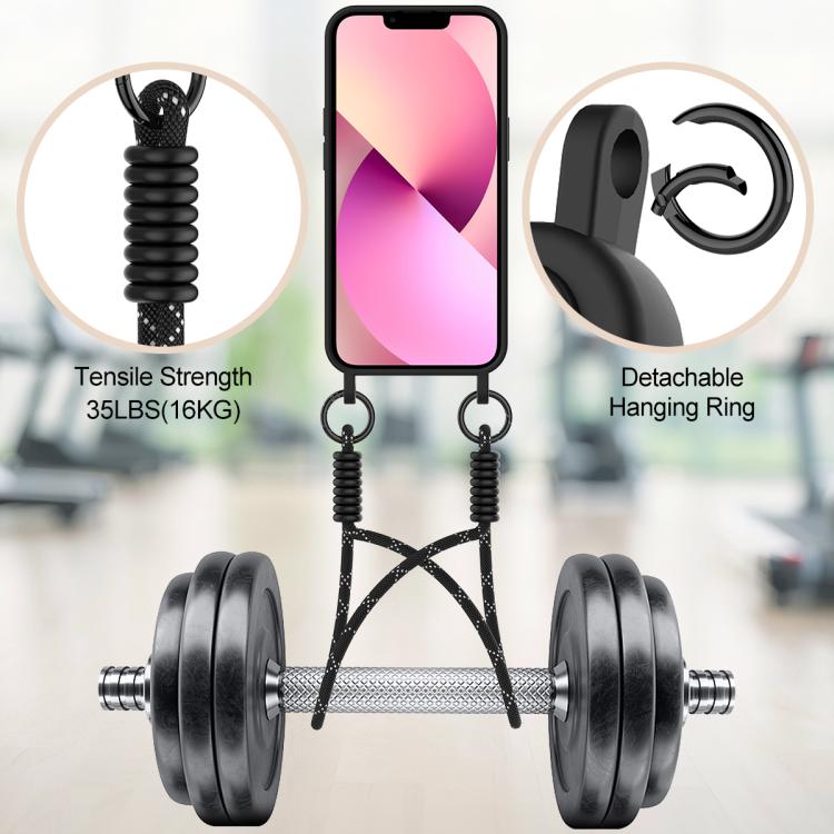 For iPhone 15 Integrated Card Bag Solid Color Liquid Silicone Phone Case Gen2 with Short Lanyard(Black)