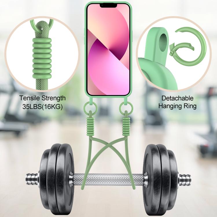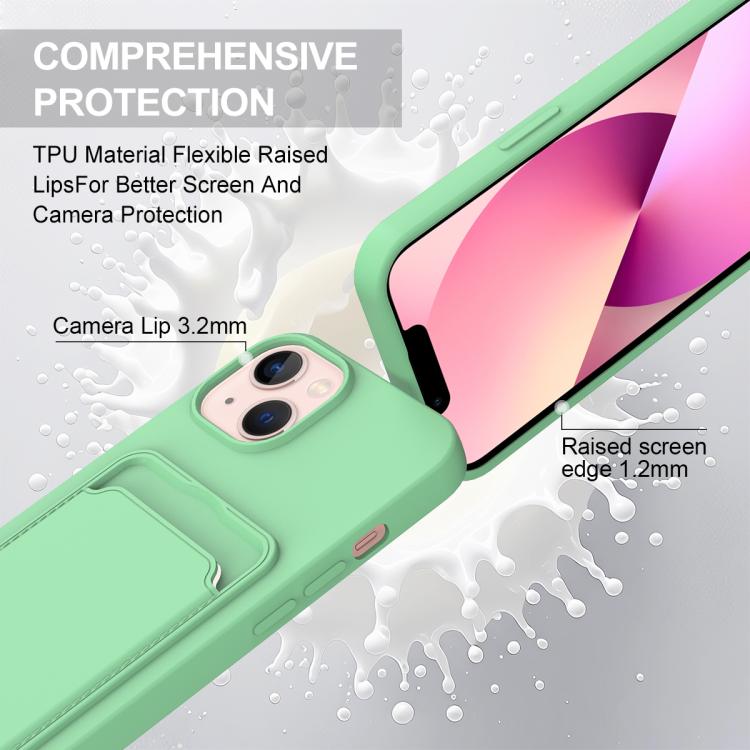 For iPhone 15 Integrated Card Bag Solid Color Liquid Silicone Phone Case Gen2 with Short Lanyard(Green)