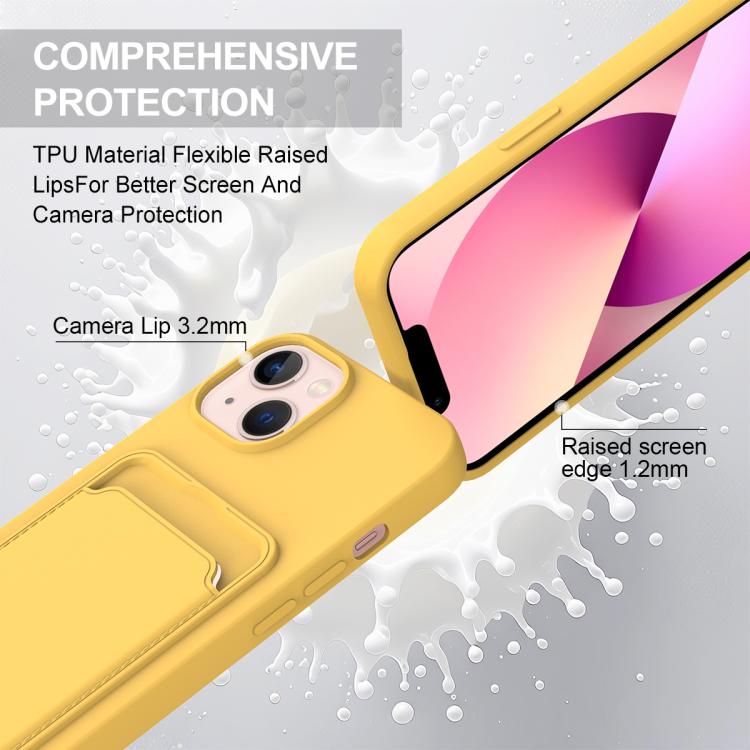 For iPhone 15 Integrated Card Bag Solid Color Liquid Silicone Phone Case Gen2 with Short Lanyard(Yellow)