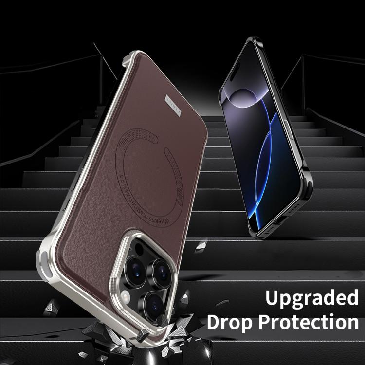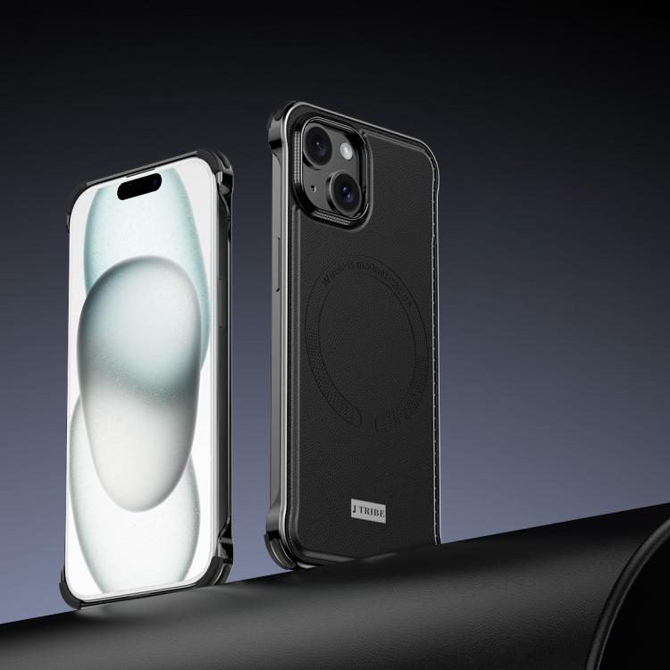 For iPhone 15 J TRIBE Metal Frameless Plain Leather MagSafe Phone Case(Black)
