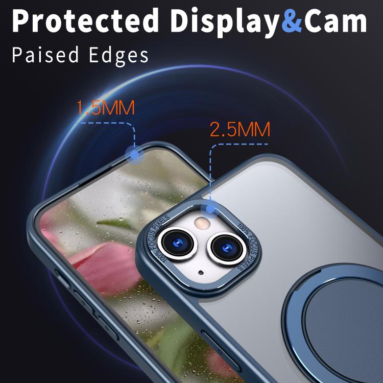 For iPhone 15 Kalebol 360-degree Rotating MagSafe Magnetic Holder Phone Case(Blue)