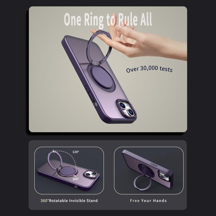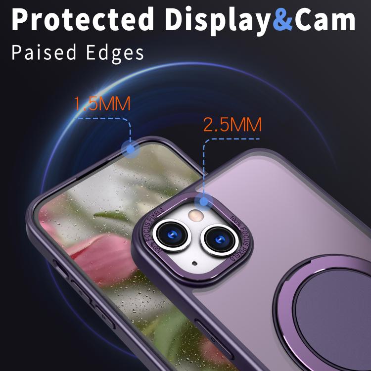 For iPhone 15 Kalebol 360-degree Rotating MagSafe Magnetic Holder Phone Case(Purple)
