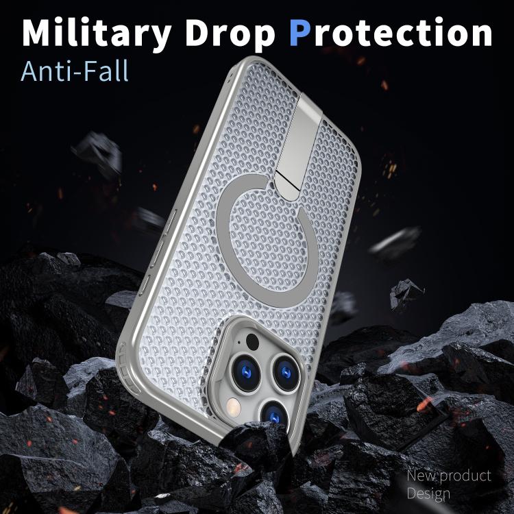 For iPhone 15 kalebol Honeycomb Cooling MagSafe Holder Phone Case(Titanium Grey)