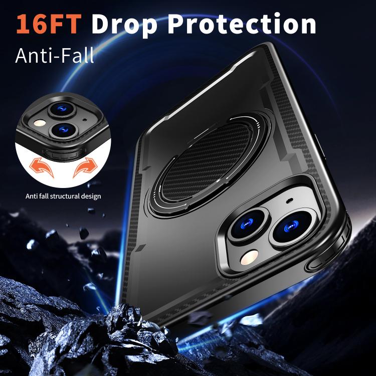 For iPhone 15 kalebol Metal 360 Degree Rotation Holder MagSafe Phone Case(Black)