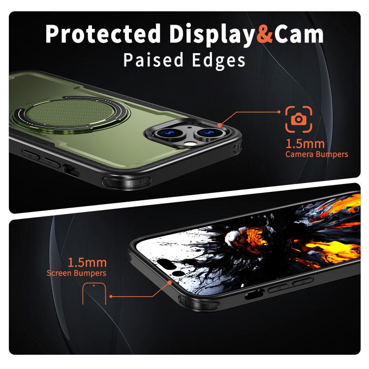 For iPhone 15 kalebol Metal 360 Degree Rotation Holder MagSafe Phone Case(Green)