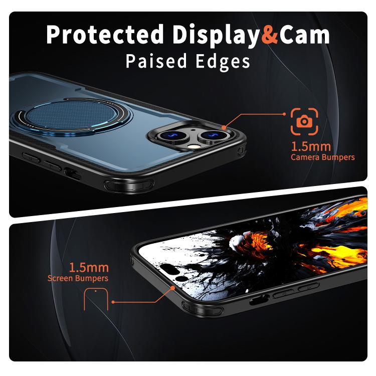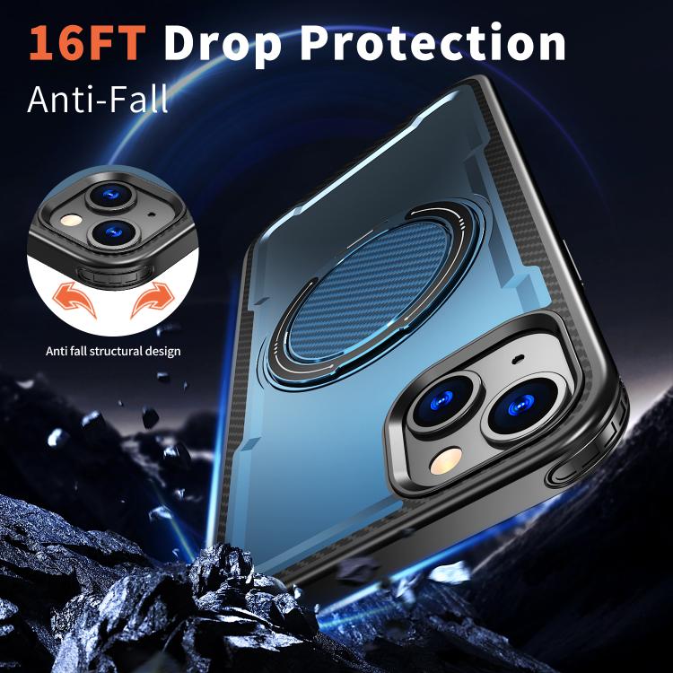 For iPhone 15 kalebol Metal 360 Degree Rotation Holder MagSafe Phone Case(Navy Blue)