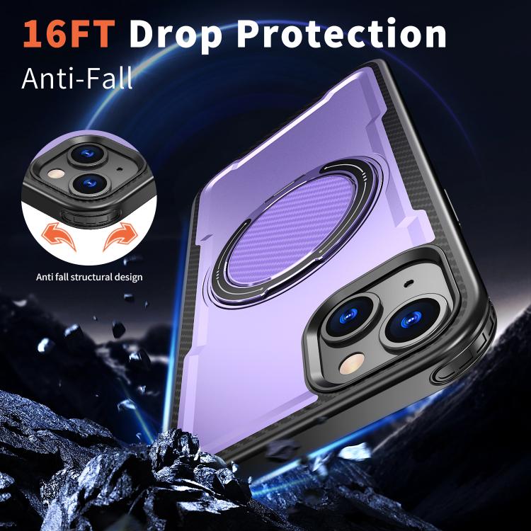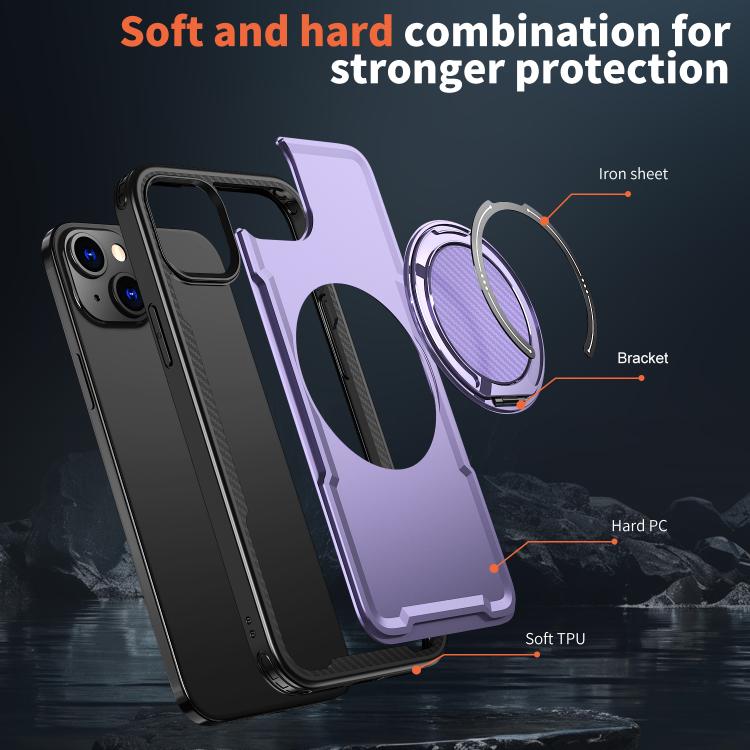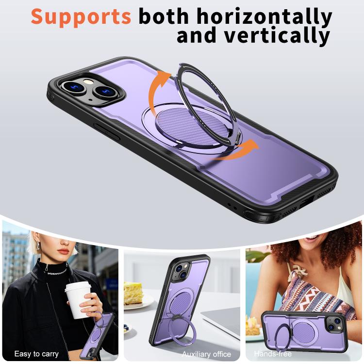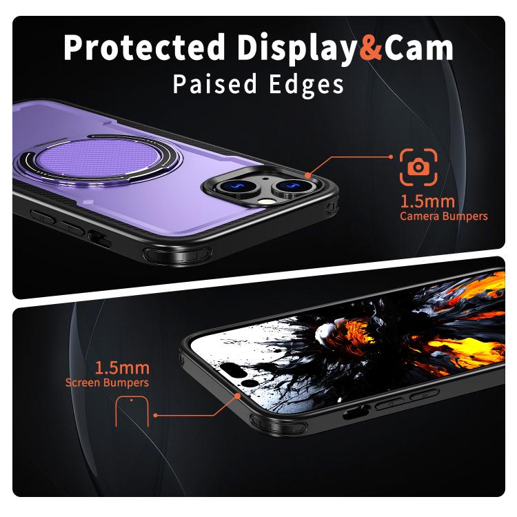 For iPhone 15 kalebol Metal 360 Degree Rotation Holder MagSafe Phone Case(Purple)