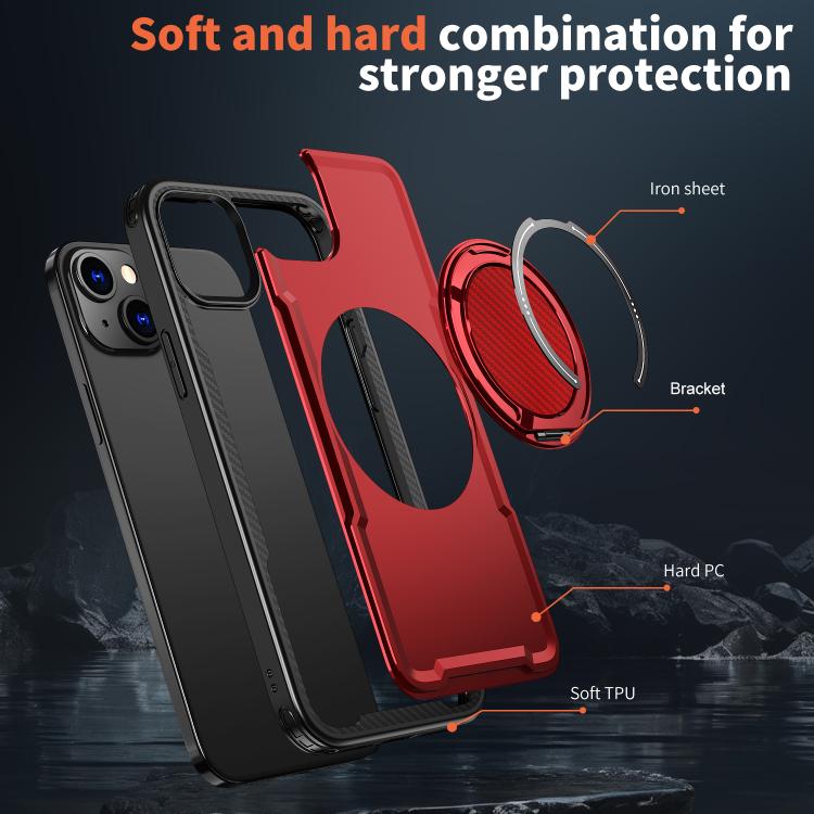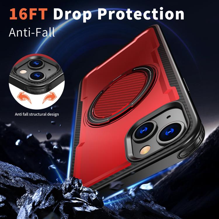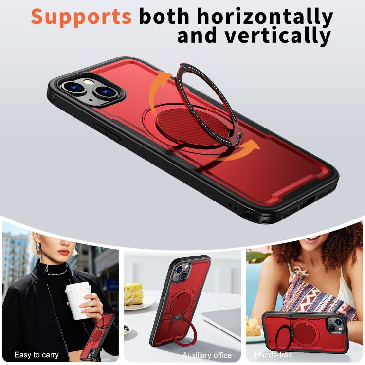 For iPhone 15 kalebol Metal 360 Degree Rotation Holder MagSafe Phone Case(Red)