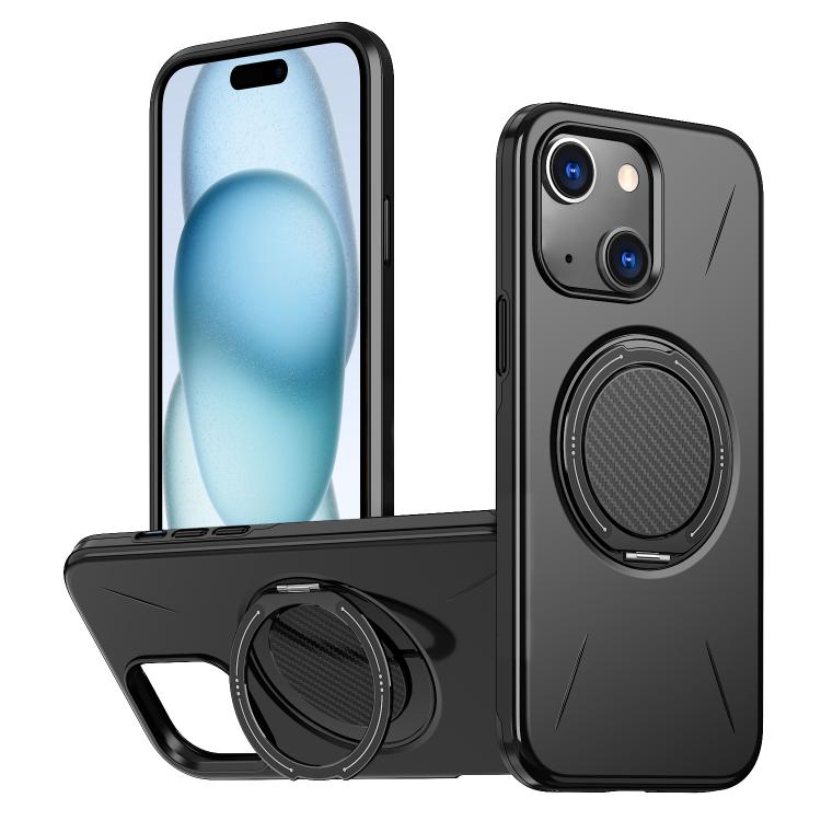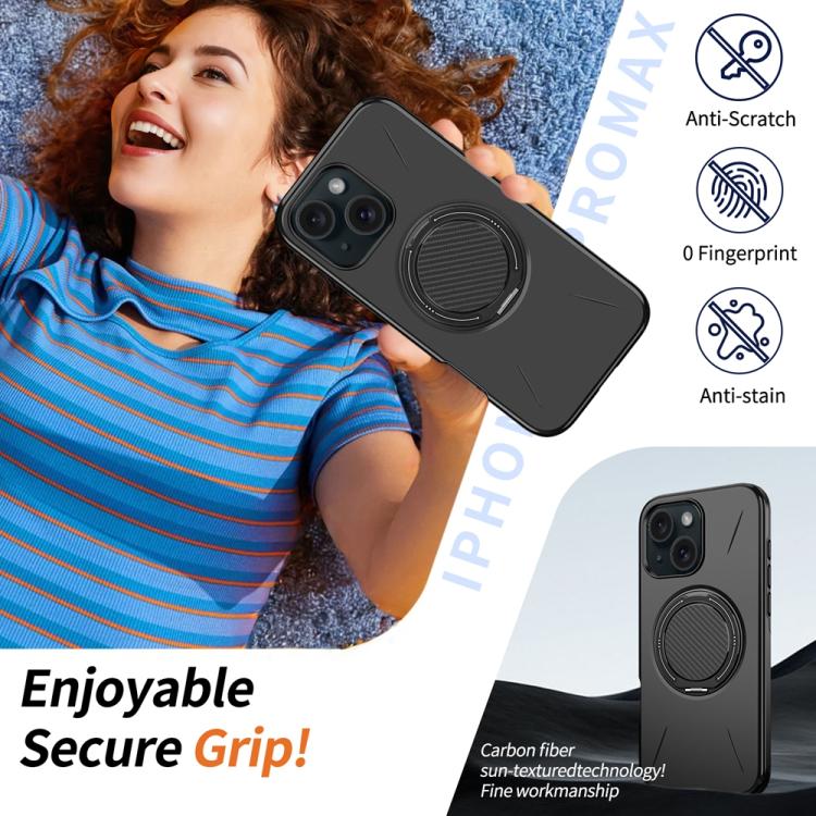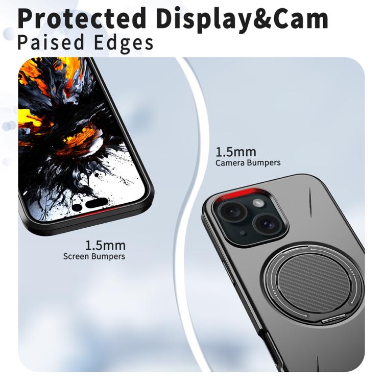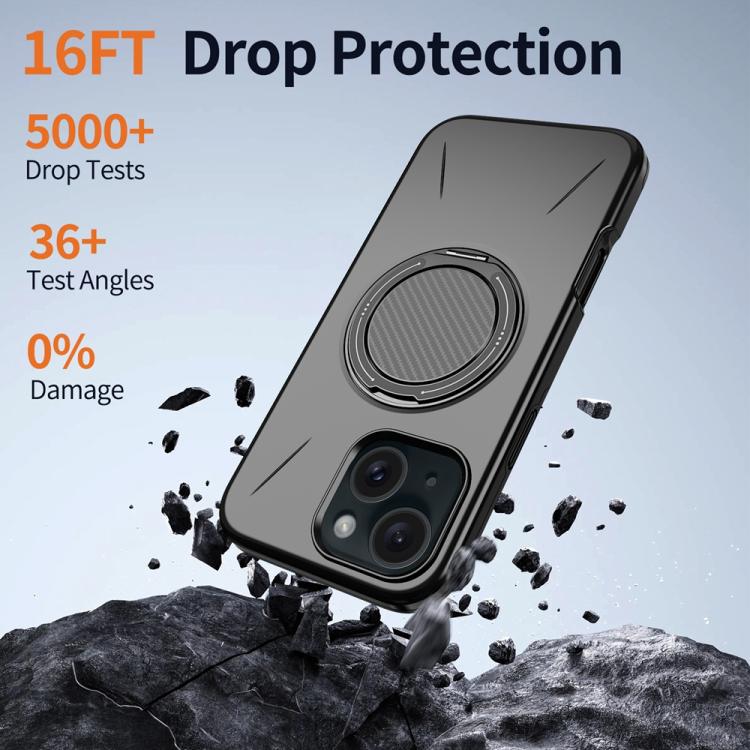 For iPhone 15 Metal Rotation Holder MagSafe TPU Hybrid PC Phone Case(Black)