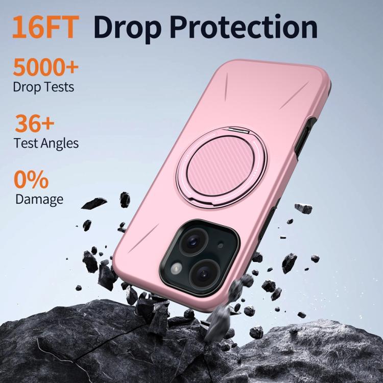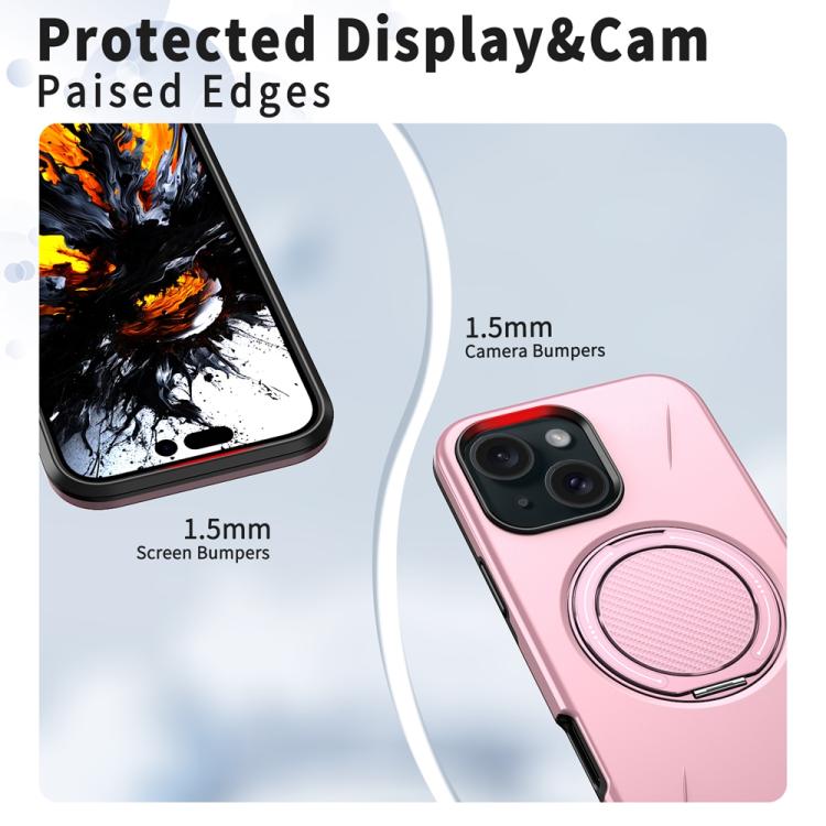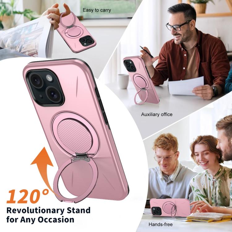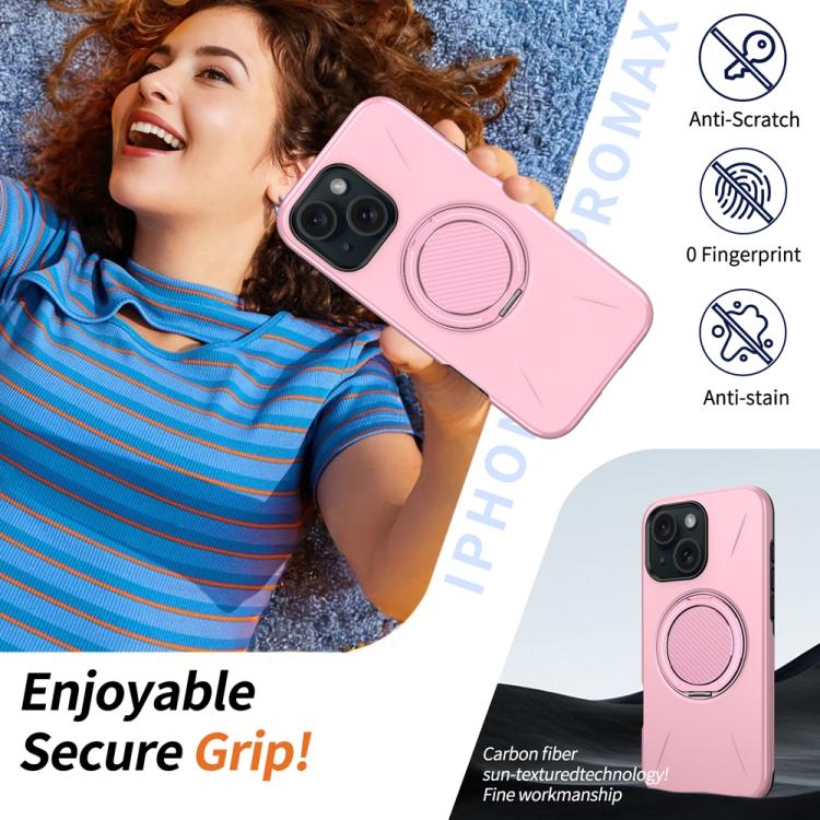 For iPhone 15 Metal Rotation Holder MagSafe TPU Hybrid PC Phone Case(Pink)