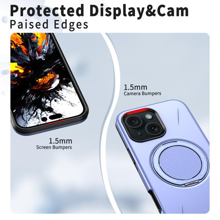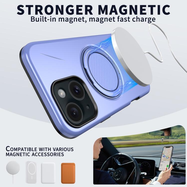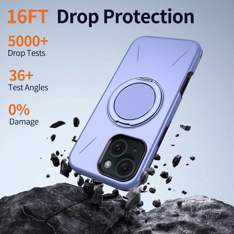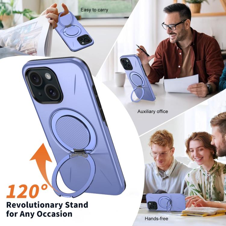 For iPhone 15 Metal Rotation Holder MagSafe TPU Hybrid PC Phone Case(Purple)