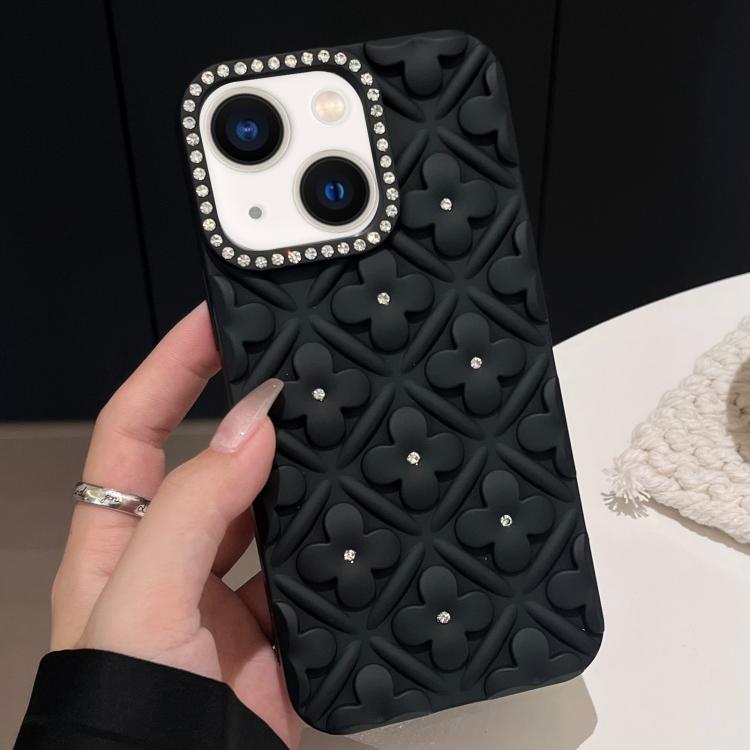 For iPhone 15 Oil-sprayed 3D Flower Diamond TPU Phone Case(Black)