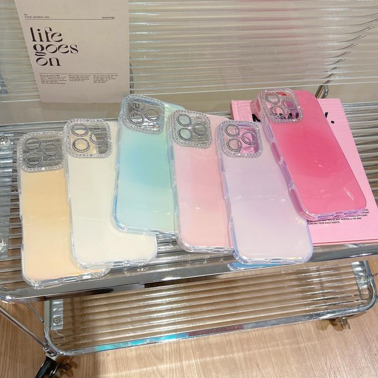 For iPhone 15 Precise Cutouts Transparent Diamonds Jelly Phone Case(Rose Red)