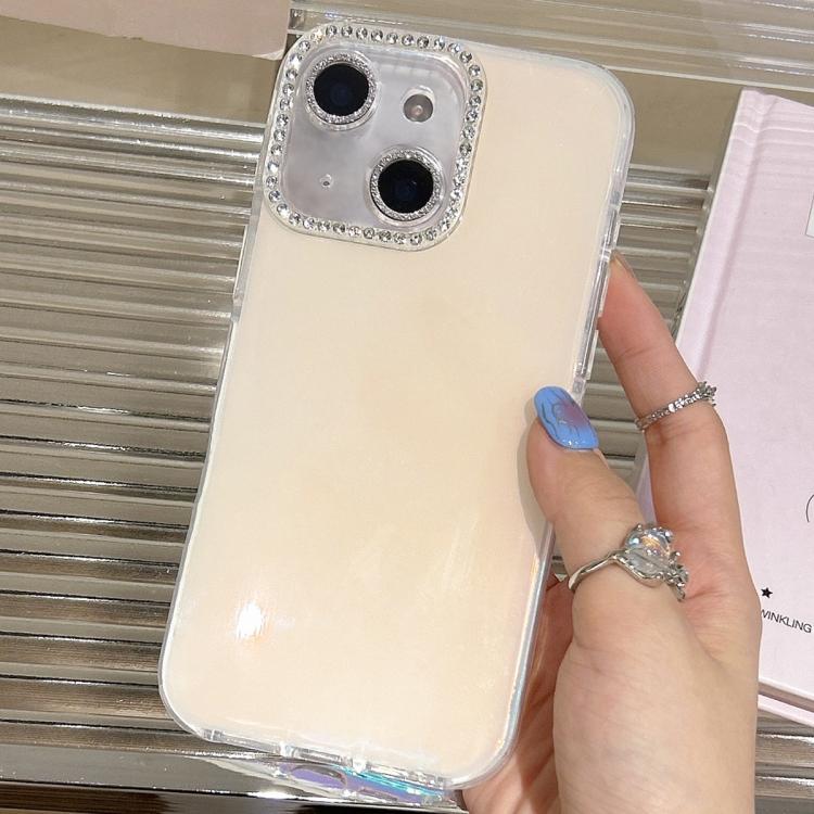 For iPhone 15 Precise Cutouts Transparent Diamonds Jelly Phone Case(White)