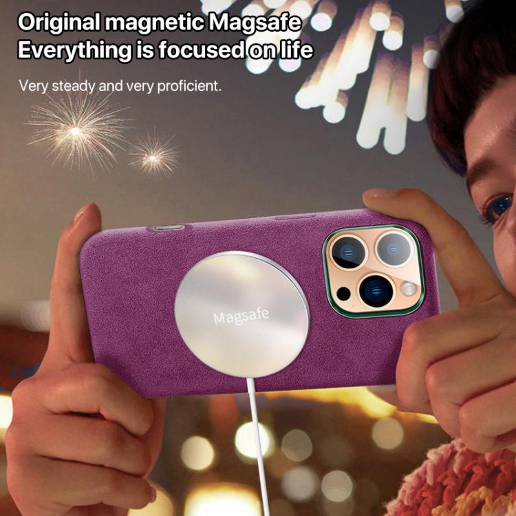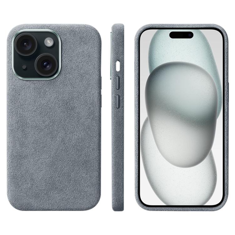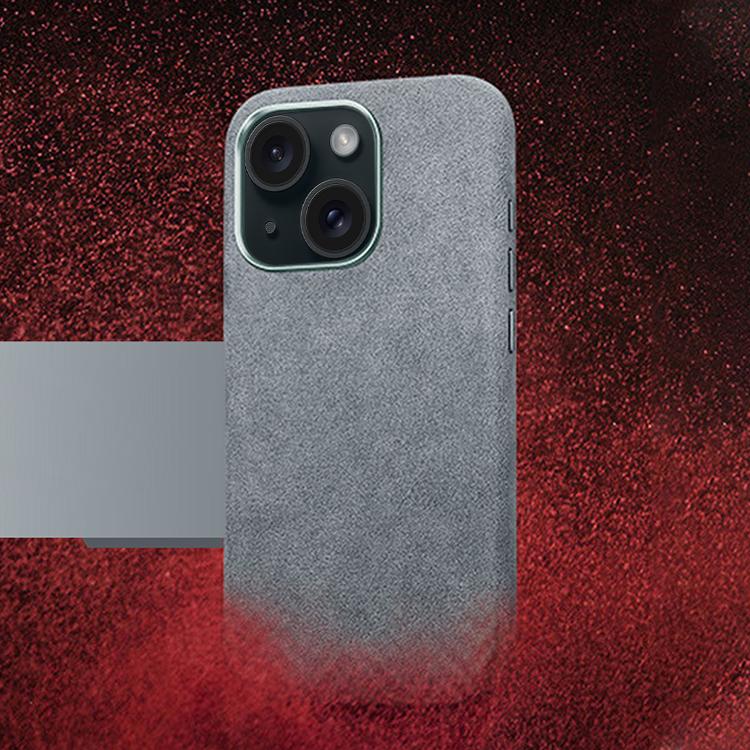 For iPhone 15 Suede Leather MagSafe Back Cover Phone Case(Grey)