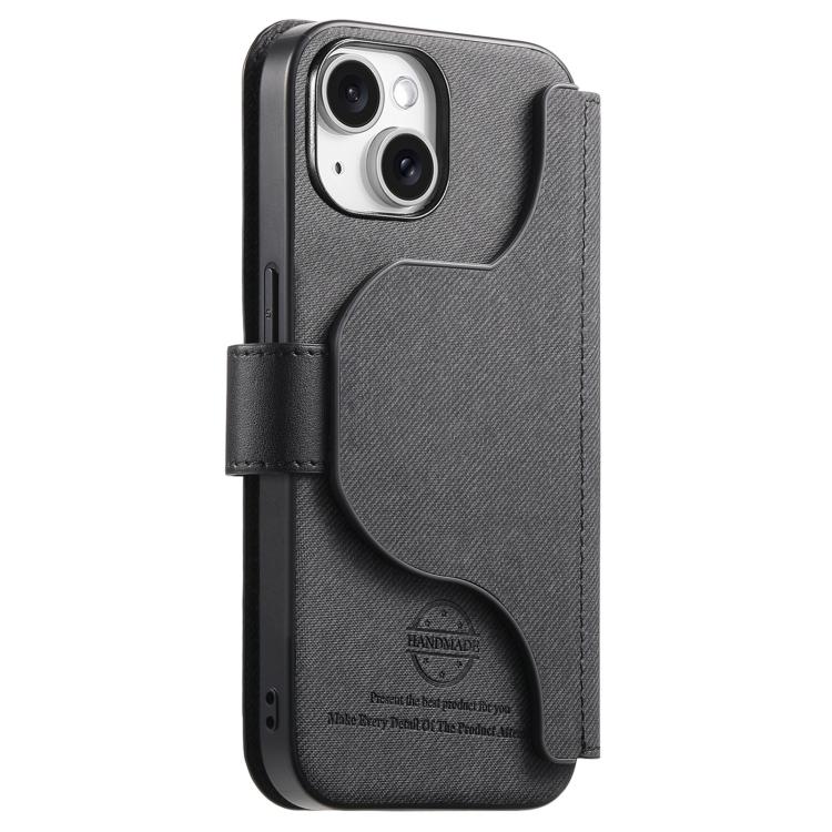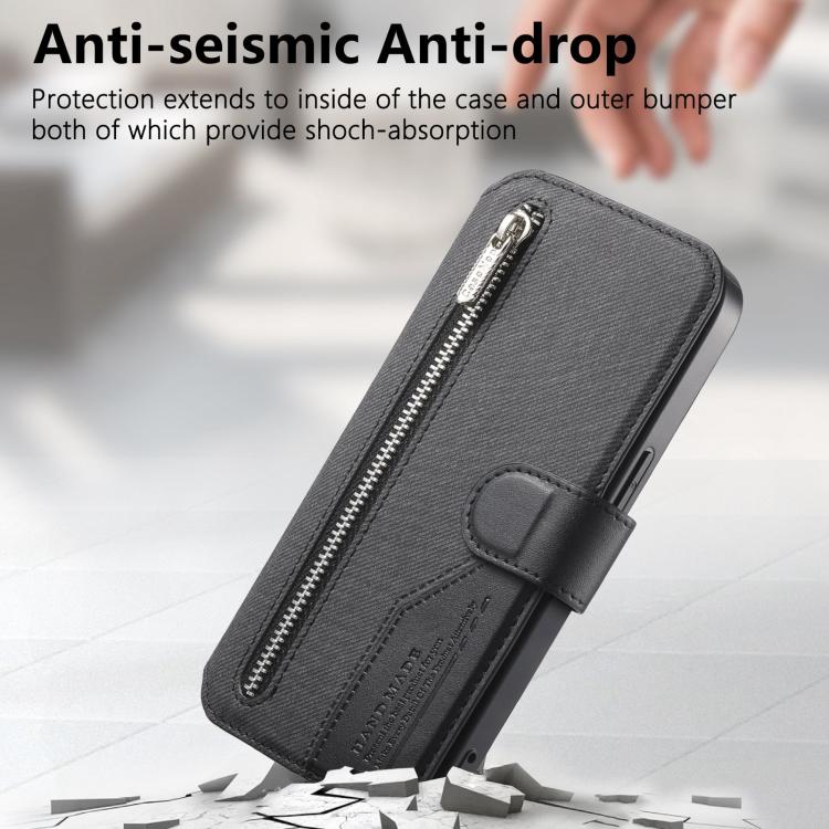For iPhone 15 Twill Fabric MagSafe RFID Anti-theft Zipper Wallet Leather Phone Case(Black)