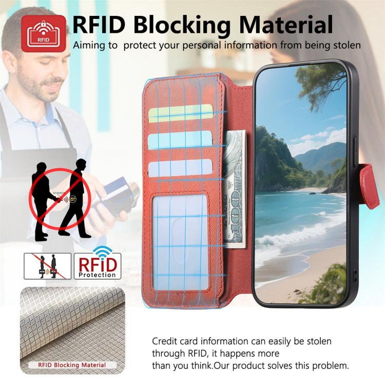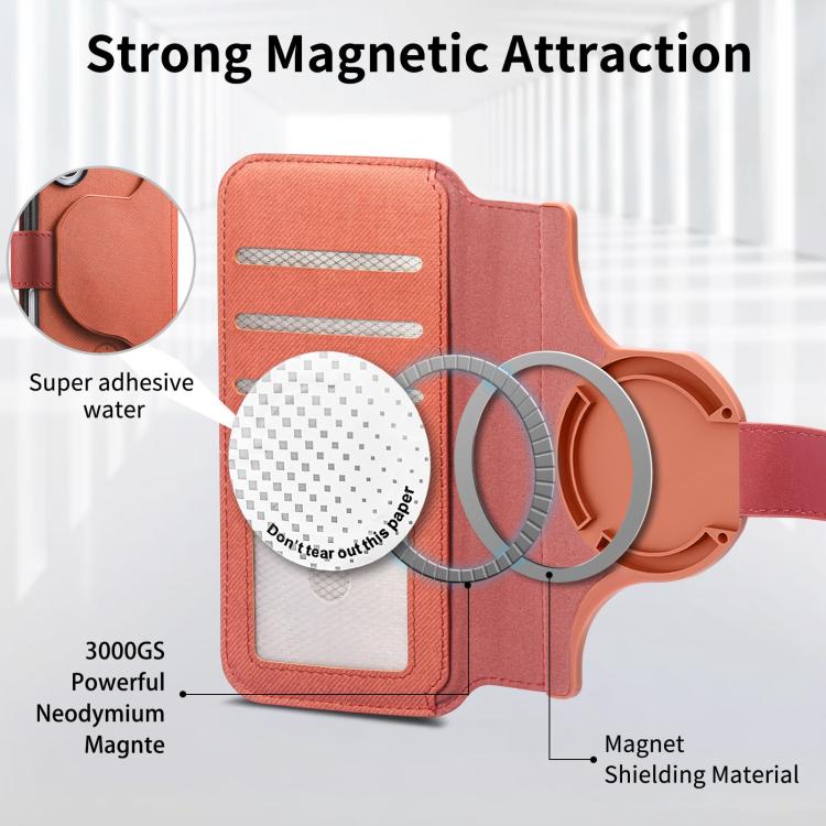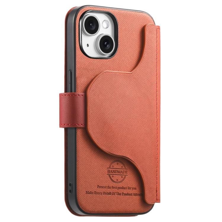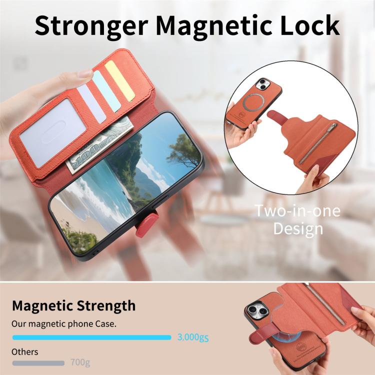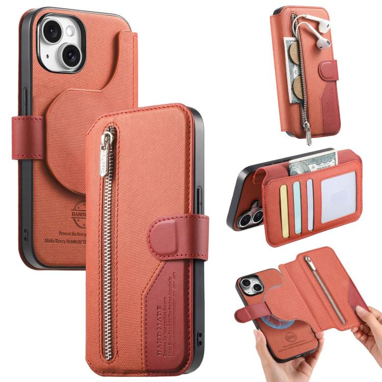 For iPhone 15 Twill Fabric MagSafe RFID Anti-theft Zipper Wallet Leather Phone Case(Orange)