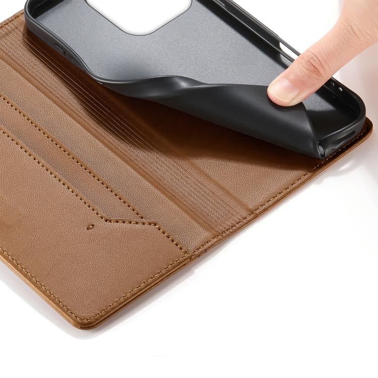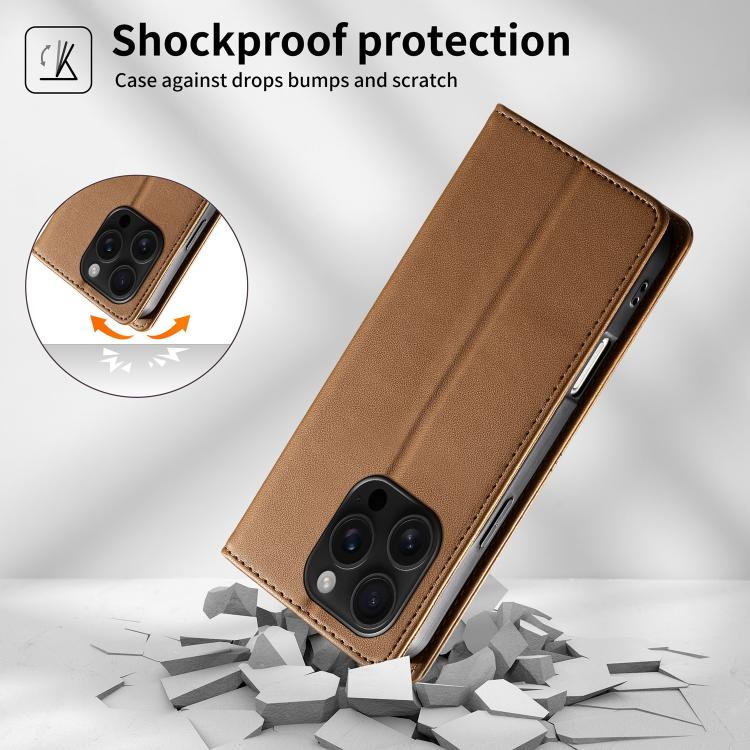 For iPhone 16 Pro Stitched Line Magnetic RFID Vegan Leather Phone Case(Brown)