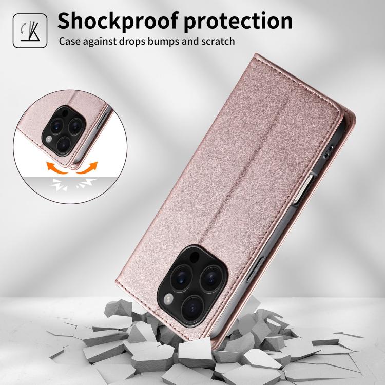 For iPhone 16 Pro Stitched Line Magnetic RFID Vegan Leather Phone Case(Pink)