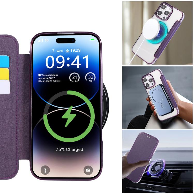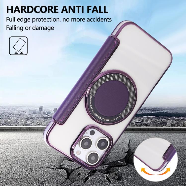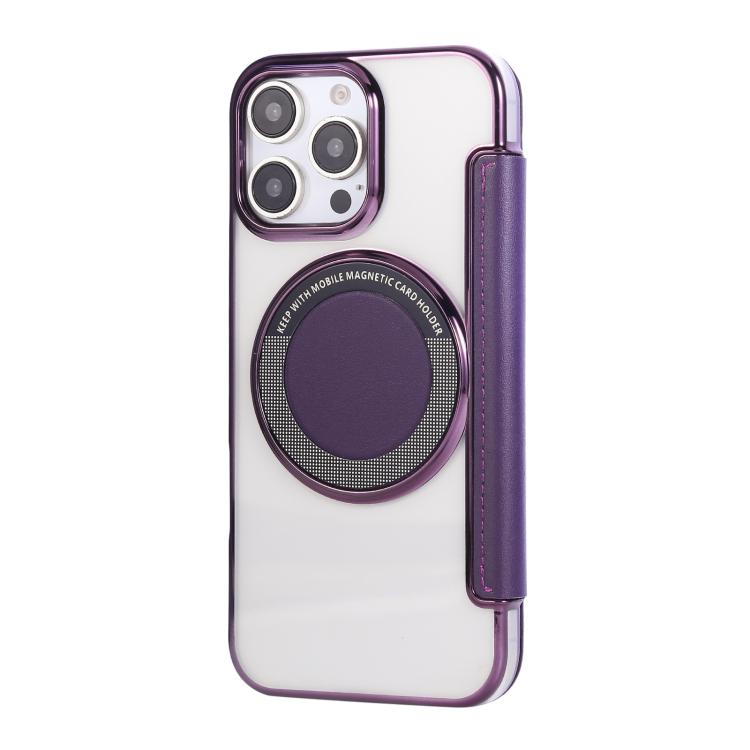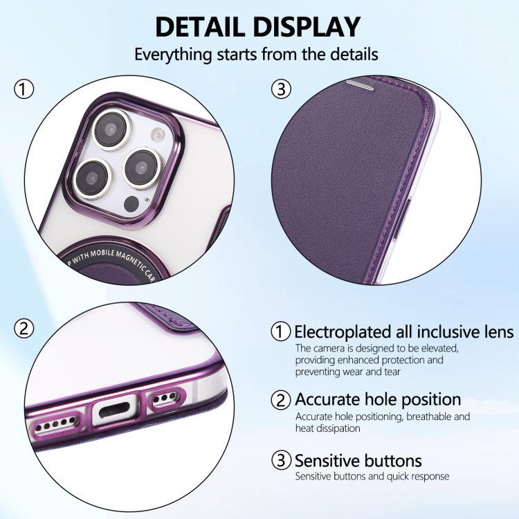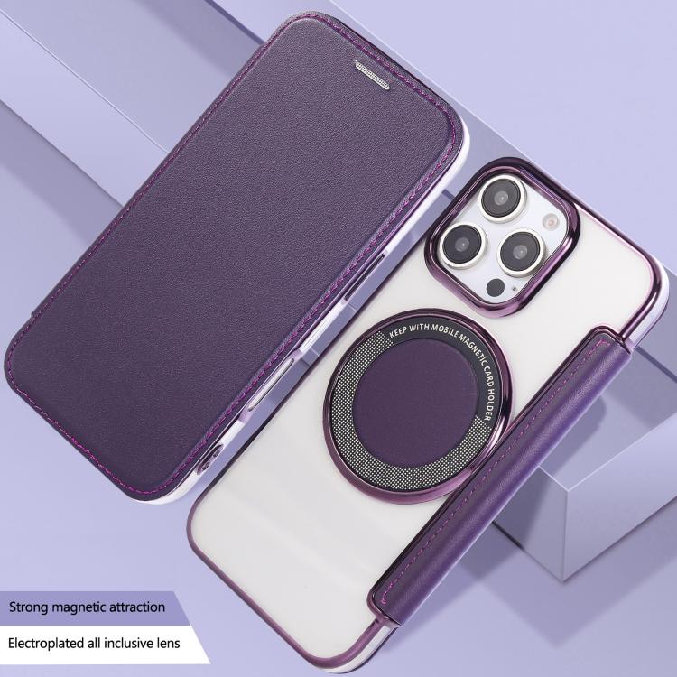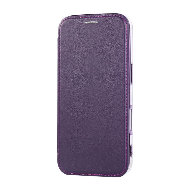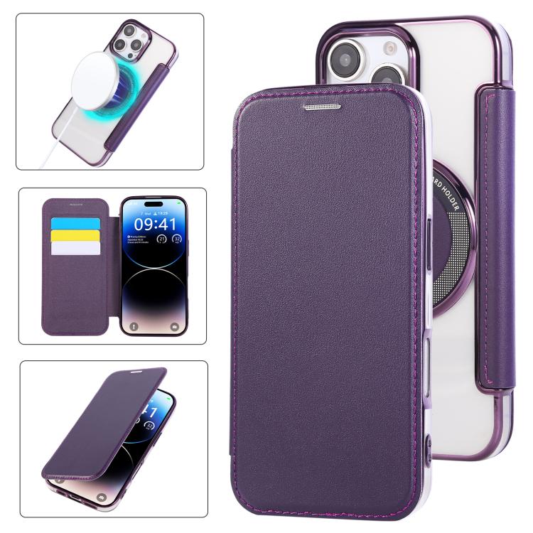 For iPhone 16 Pro Ultra-thin Magnetic Plating Vegan Leather Phone Case(Purple)