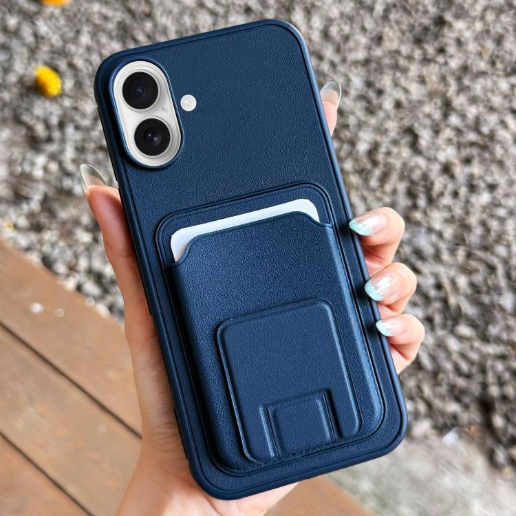 For iPhone 16 Square Folding Card Bag Holder Phone Case(Dark Blue)