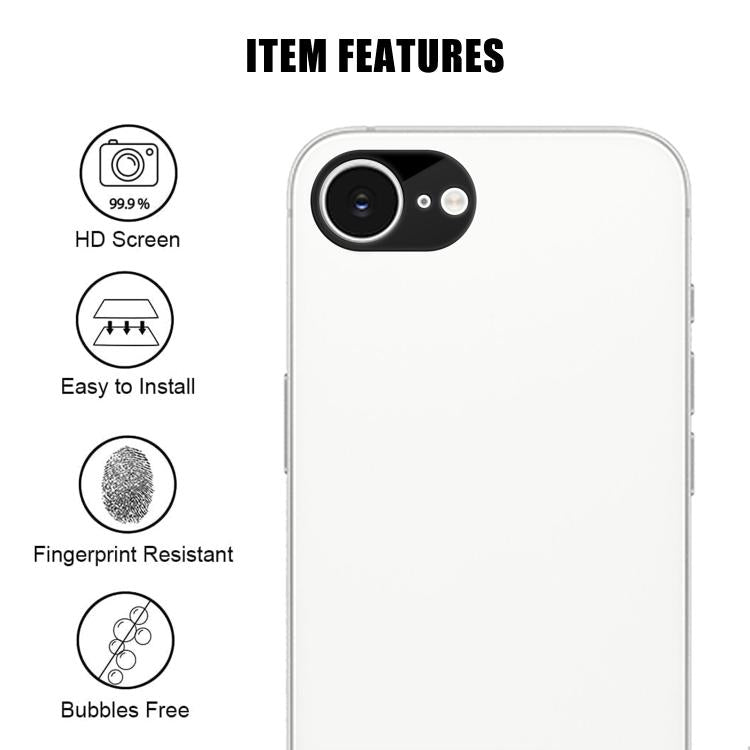 For iPhone 16e Kalebol Silk-Screened HD Anti-Fingerprint AR Integrated Camera Lens Tempered Glass Film