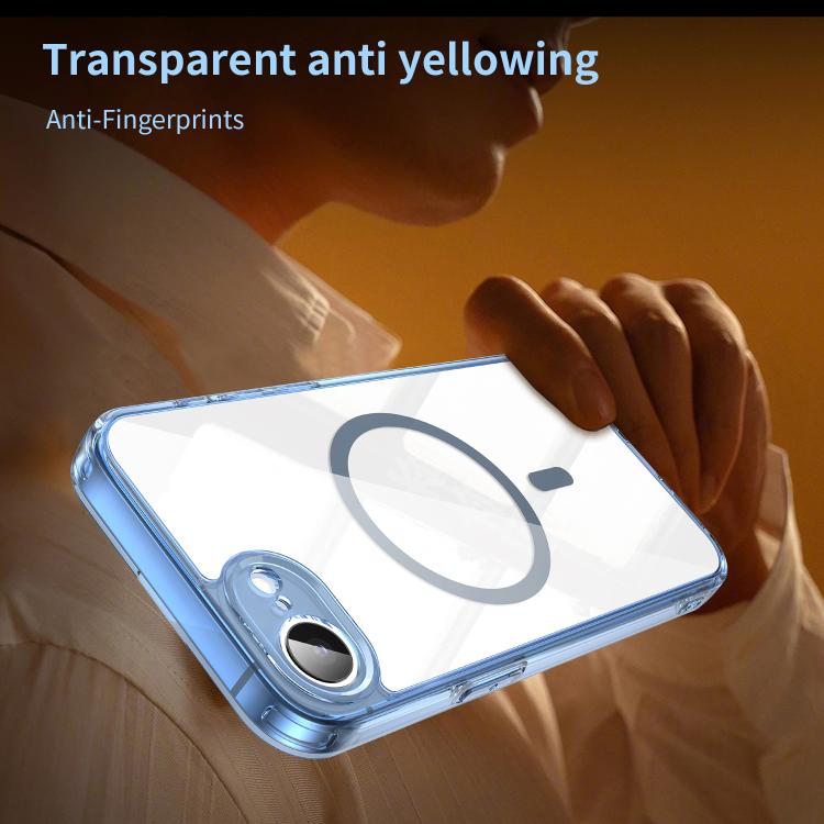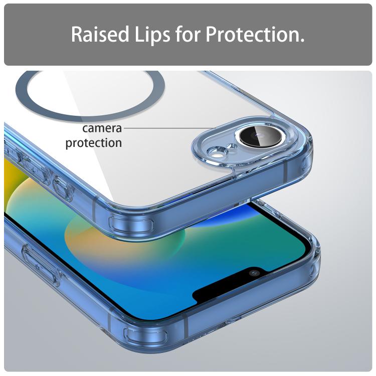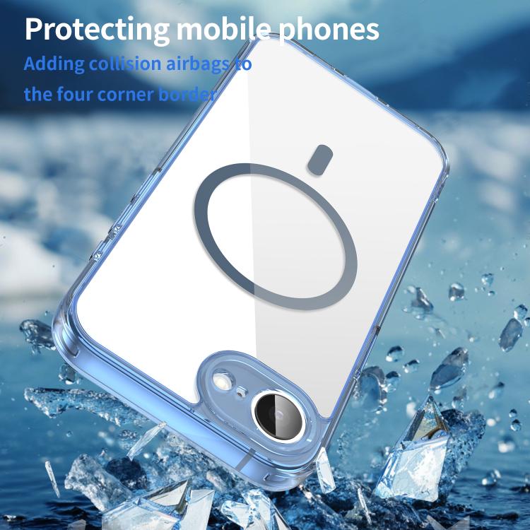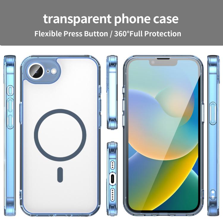 For iPhone 16e PC Hybrid TPU Airbag Shockproof MagSafe Phone Case(Transparent Blue)