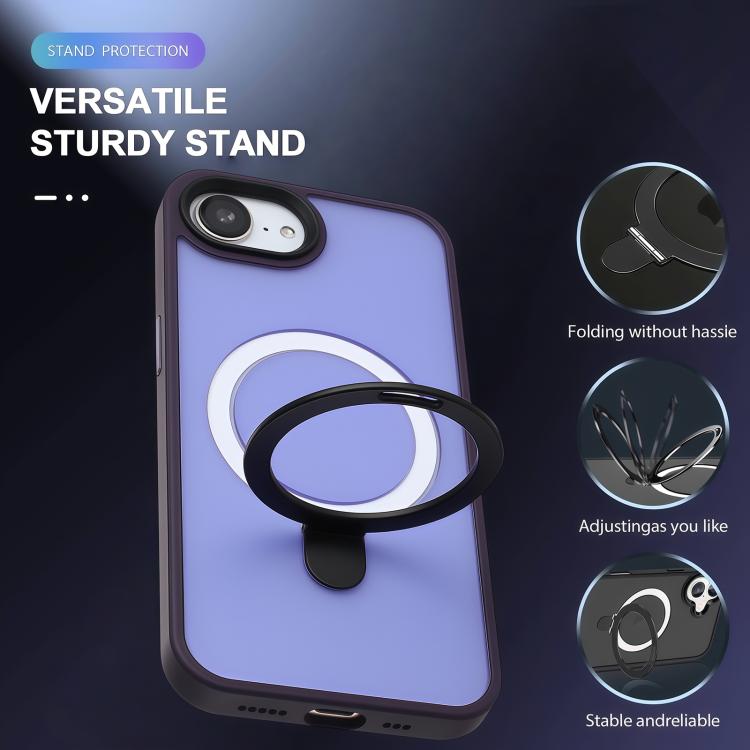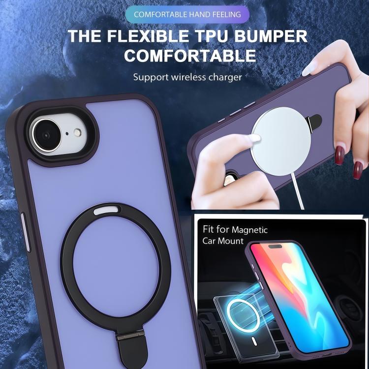 For iPhone 16e Skin-feel MagSafe Holder PC Hybrid TPU Phone Case(Dark Purple)