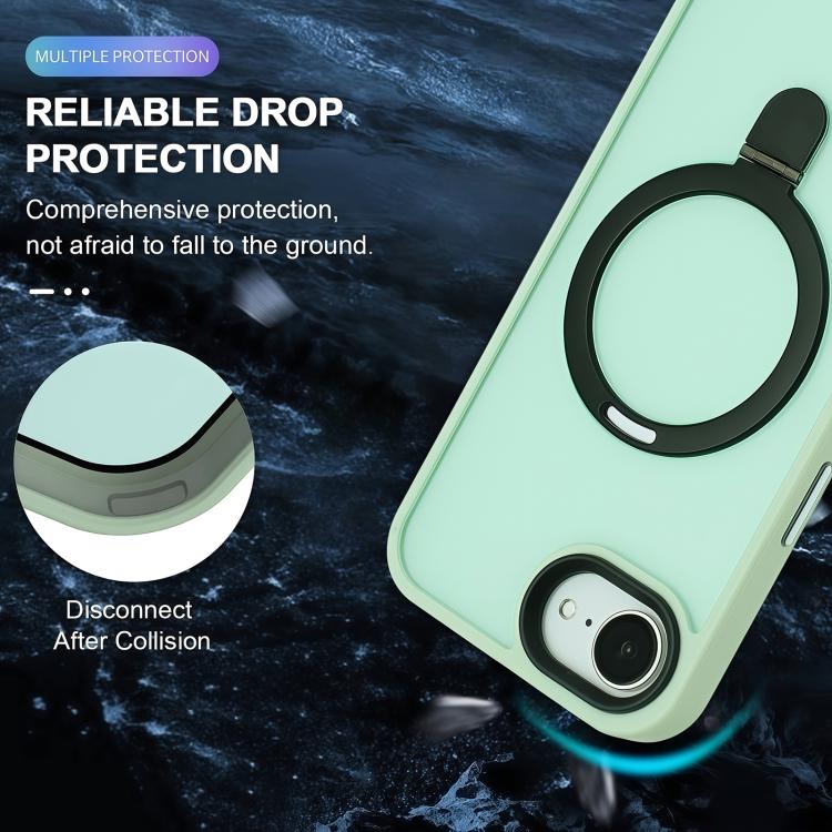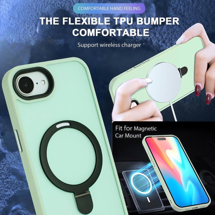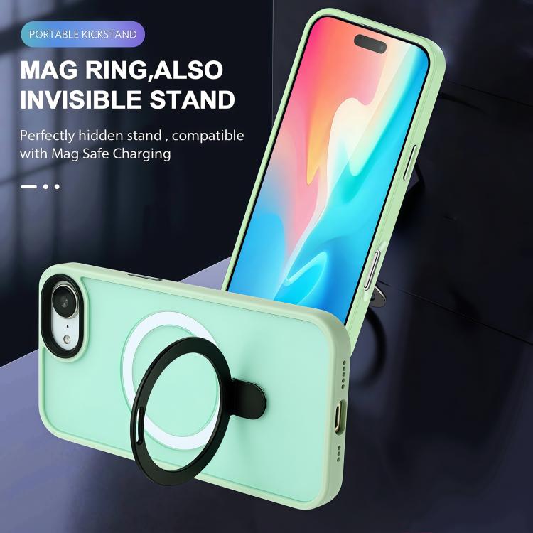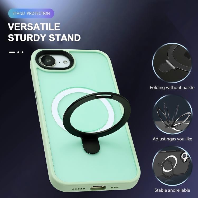 For iPhone 16e Skin-feel MagSafe Holder PC Hybrid TPU Phone Case(Matcha Green)