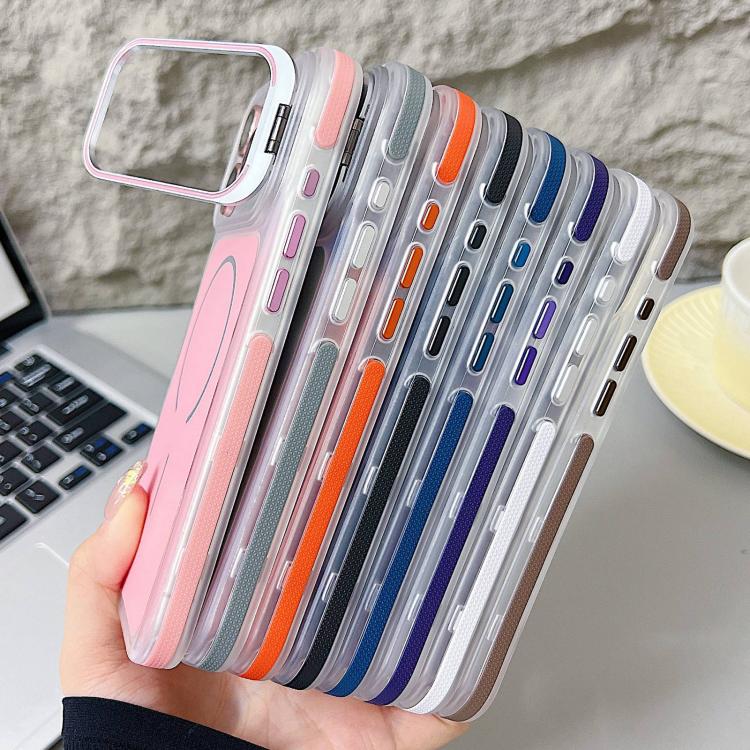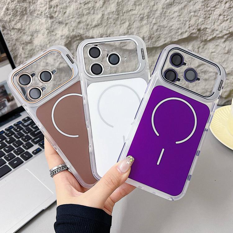 For iPhone 17 Pro Electroplated Lens Holder MagSafe PC Hybrid TPU Phone Case(Blue)