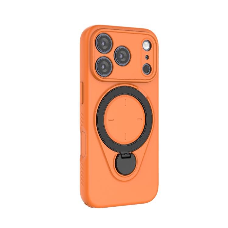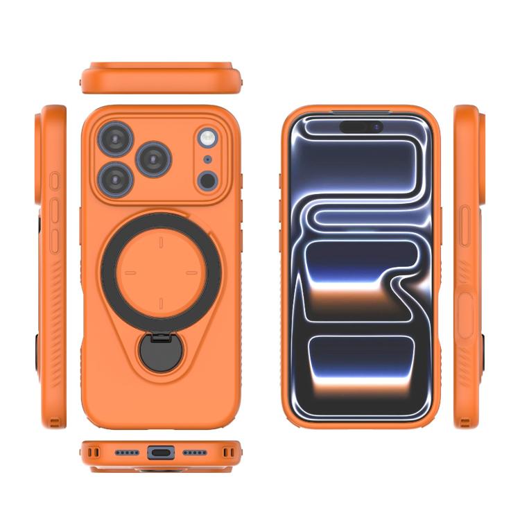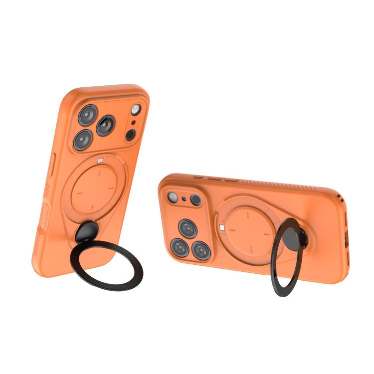 For iPhone 17 Pro Ring Shield MagSafe TPU Phone Case with 360 Degree Rotating Holder(Orange)