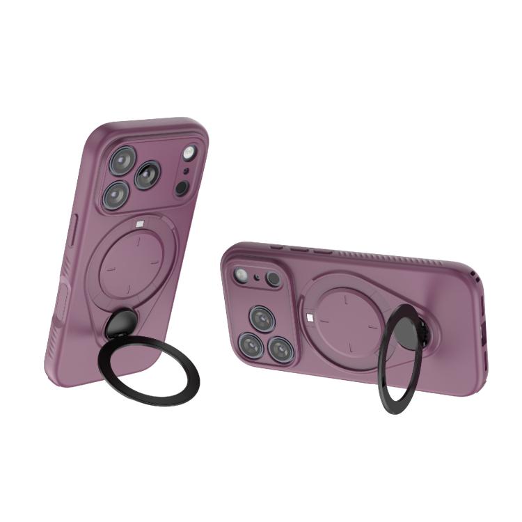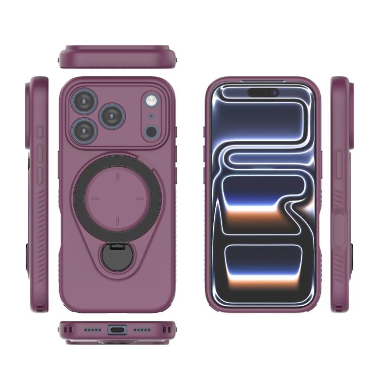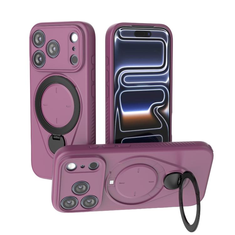 For iPhone 17 Pro Ring Shield MagSafe TPU Phone Case with 360 Degree Rotating Holder(Wine Red)