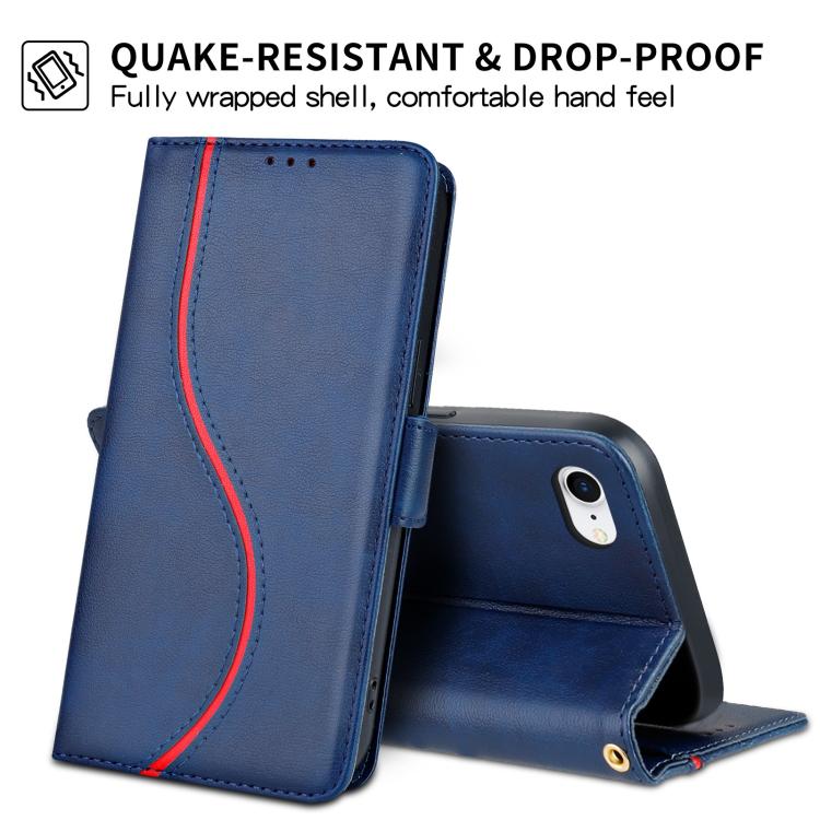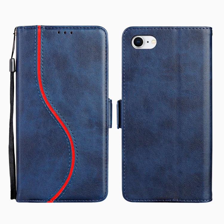 For iPhone 7 / 8 / SE 2022 Side Buckle S Curve Leather Phone Case(Blue)
