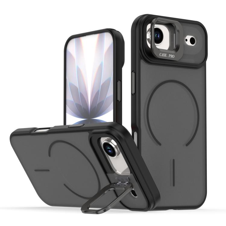 For iPhone Air Bright Color Frosted Skin-feel Camera Bracket Magsafe Phone Case(Black)