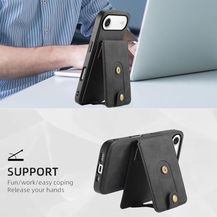 For iPhone Air Denior D14 NK Retro Pattern MagSafe Magnetic Card Holder Leather Phone Case(Black)